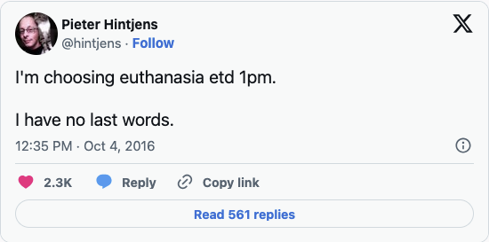 پیتر هینتجنز اُتانازی را انتخاب کرد